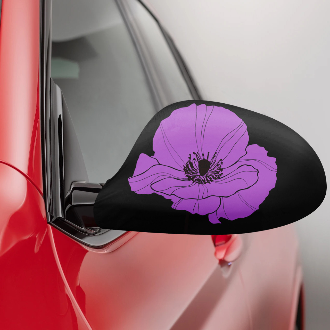 Purple Poppy Fabric Car Mirror Covers