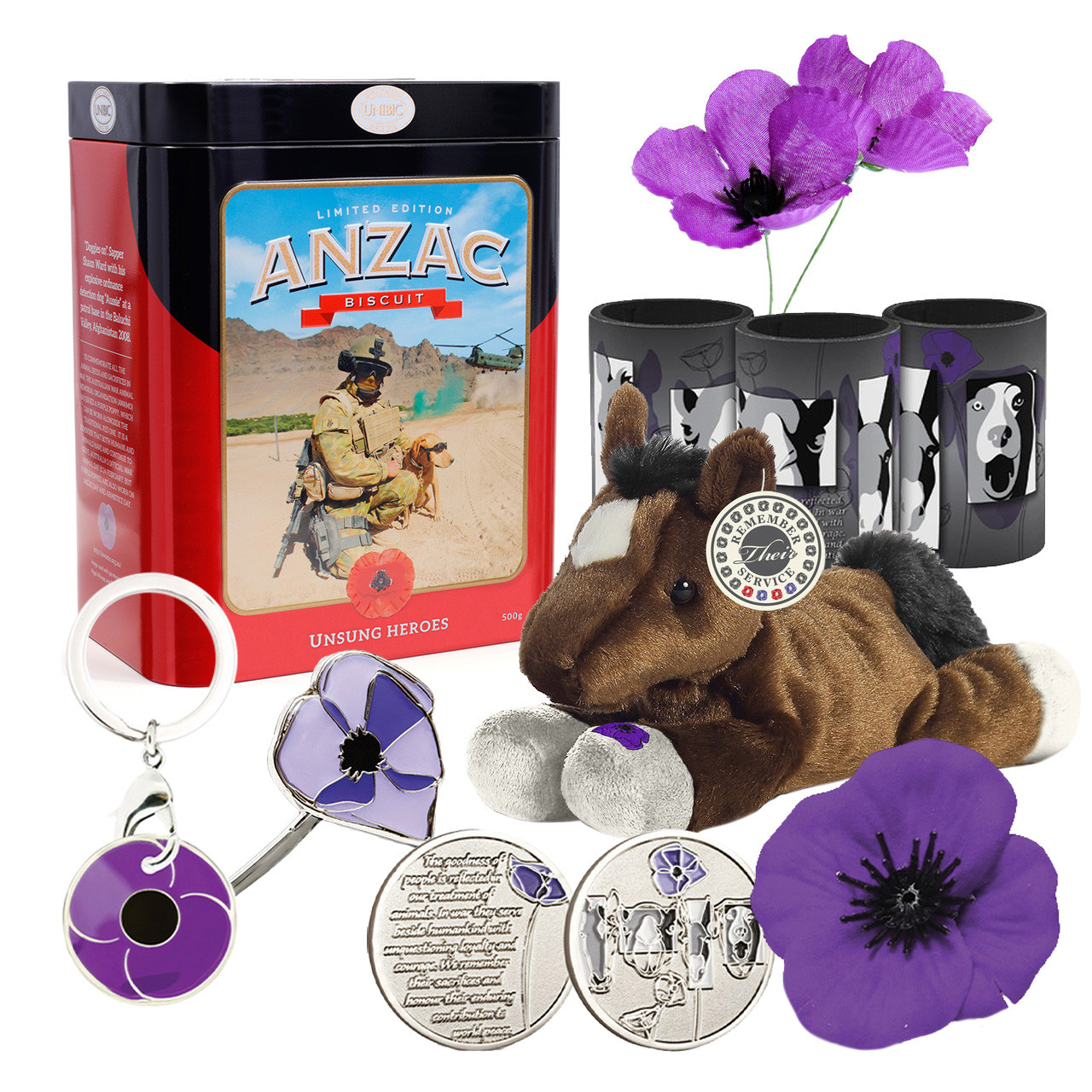 The Purple Poppy honours all animals – great and small – who have served alongside our military, search and rescue, and law enforcement. Every sale of Purple Poppy Products* supports the Australian War Animals Memorial Organisation.